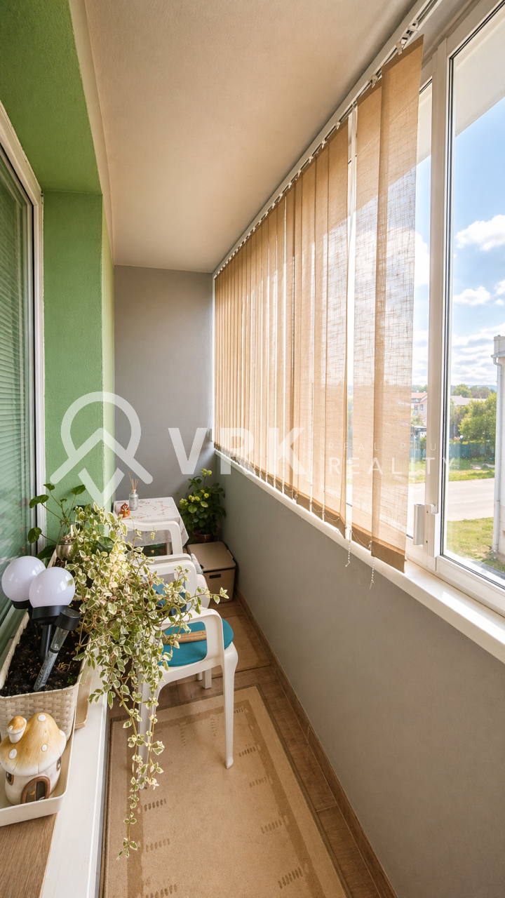 Byt má výmeru 84 m² + loggia o veľkosti 4,6 m². Je po staršej rekonštrukcii, ktorá zahŕňa plastové okná, čiastočne obnovenú elektroinštaláciu, plávajúce podlahy v kombinácii s parketami, murované jadro a zateplenú loggiu. Dispozične ponúka dostatok priestoru pre rodinné bývanie.