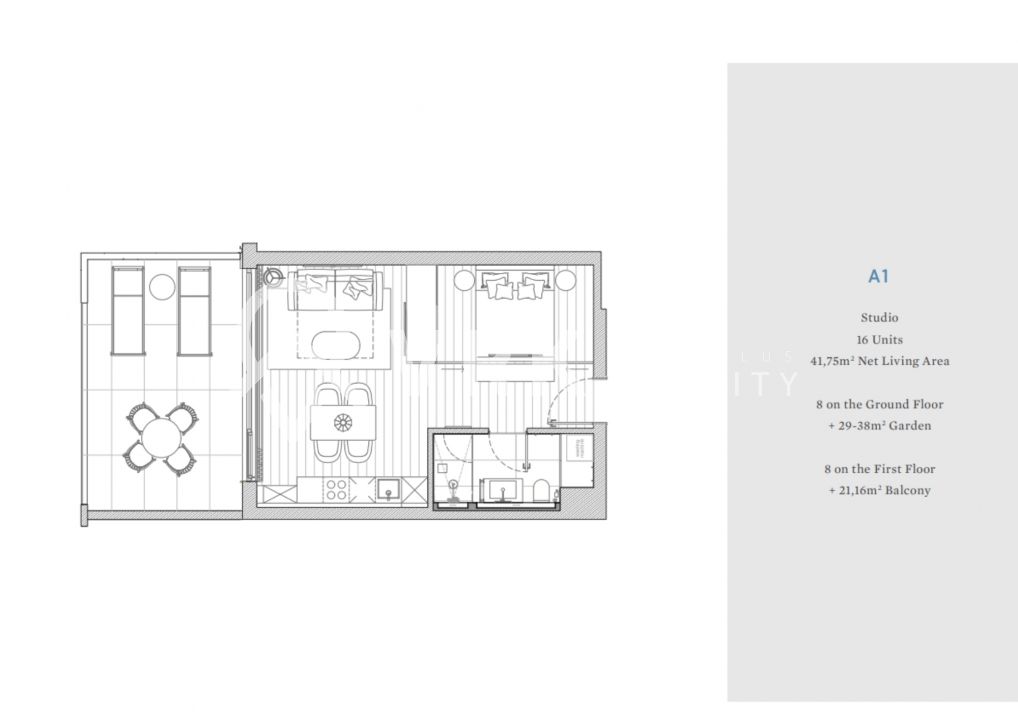 Prízemie: 8 apartmánov so záhradou o výmere 29–38 m²