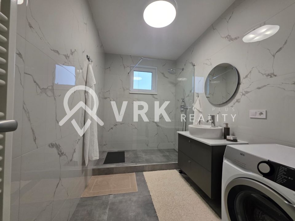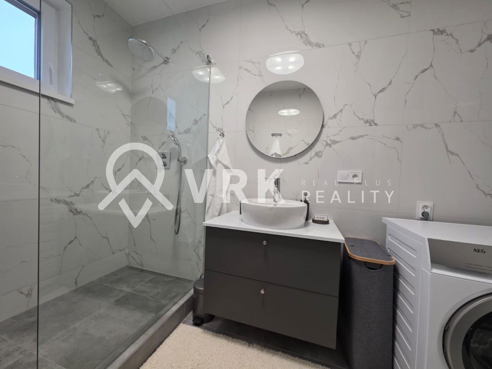 - v kúpeľni je práčka, kúpeľňový stolík, sprchovací kút