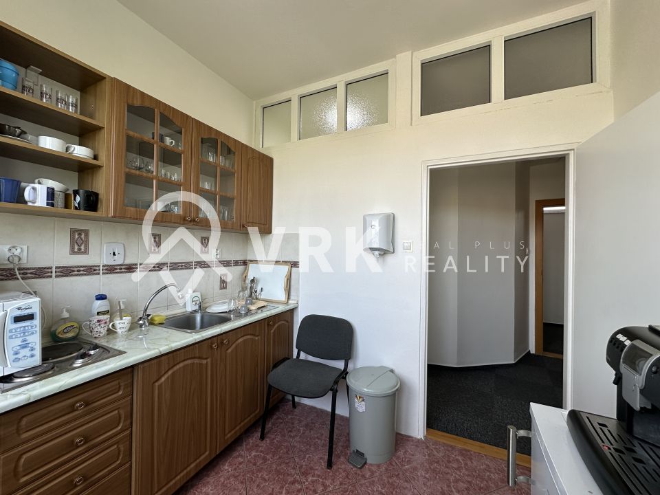 Priestor na 1. poschodí vo výmere 100 m2 s dispozíciou: chodba, WC s umývadlom, kuchynka s chladničkou, mikrovlnkou a kávovarom, 3x miestnosť.